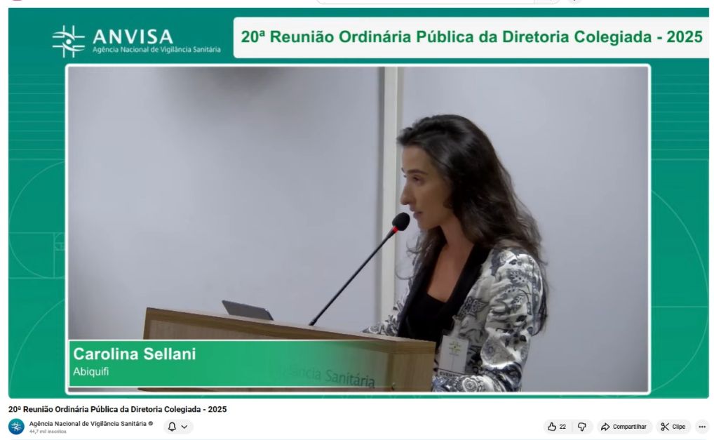 Durante sua manifestação oral, a coordenadora de Assuntos Estratégicos e do Grupo de Trabalho de Insumos de Cannabis da Abiquifi, Carolina Sellani, destacou que a revisão da RDC 327 é uma oportunidade estratégica para atualizar, aprimorar e expandir os avanços obtidos desde 2019, ocasião em que a entidade iniciou sua atuação acerca do tema.